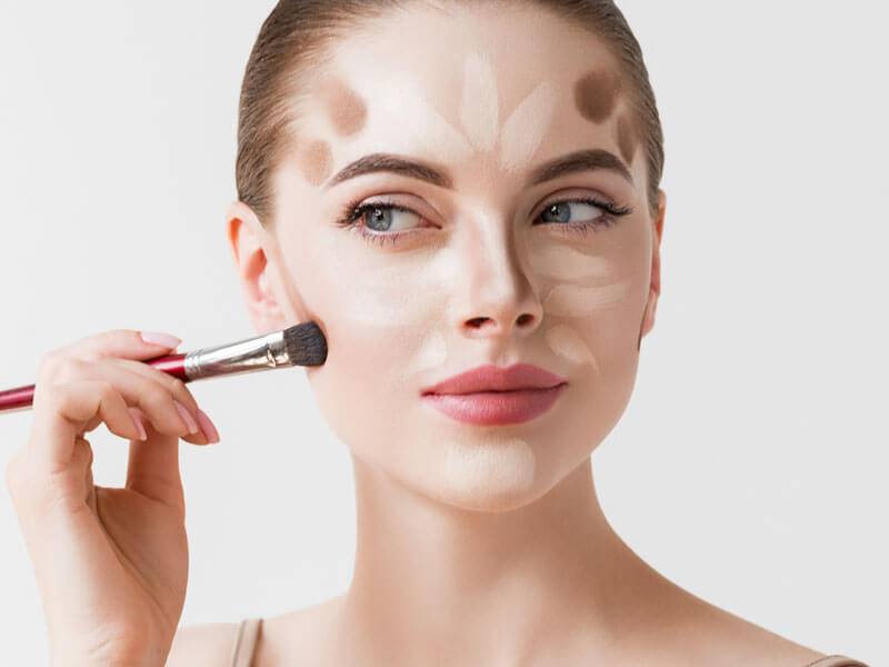 - контуринг лица для создания нужной формы и очертаний;