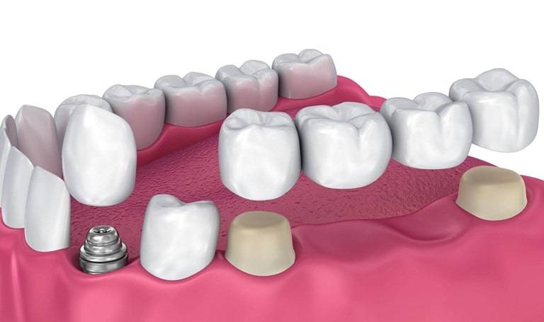 Возможна также установка не только единичной коронки, но и так называемого моста, что требует сточить полностью здоровые элементы зубного ряда.