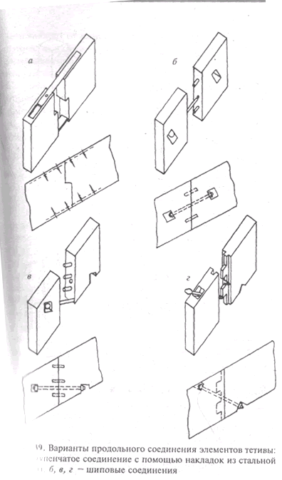 Для увеличения прочности и несущей способности деревянные косоуры для лестниц на косоурах на практике делаются составными – из двух-трех склеенных между собой досок (рис. 39).