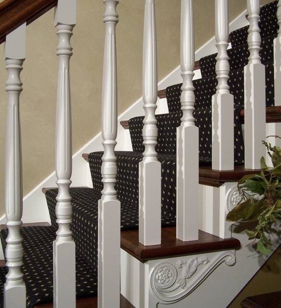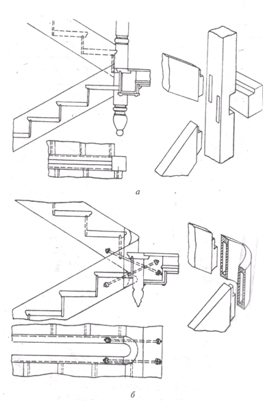 Замечание. На практике стеновые тетивы лестниц на тетивах невозможно плотно прикрепить к стене, поэтому образующуюся щель перекрывают штапиком.