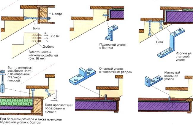 Для закрепления ступенек изнутри применяют собственно набиваемые деревянные бруски или уголки стальные. На них и кладут ступеньки.