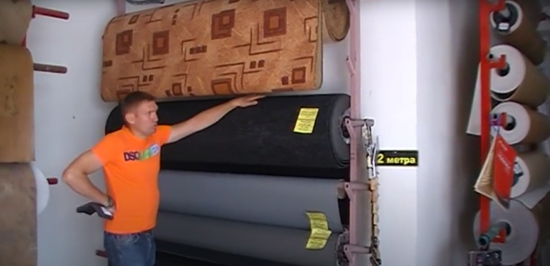 - Далее в магазине лучше выбрать ковролин с шириной рулона близкого к проведённым замерам.