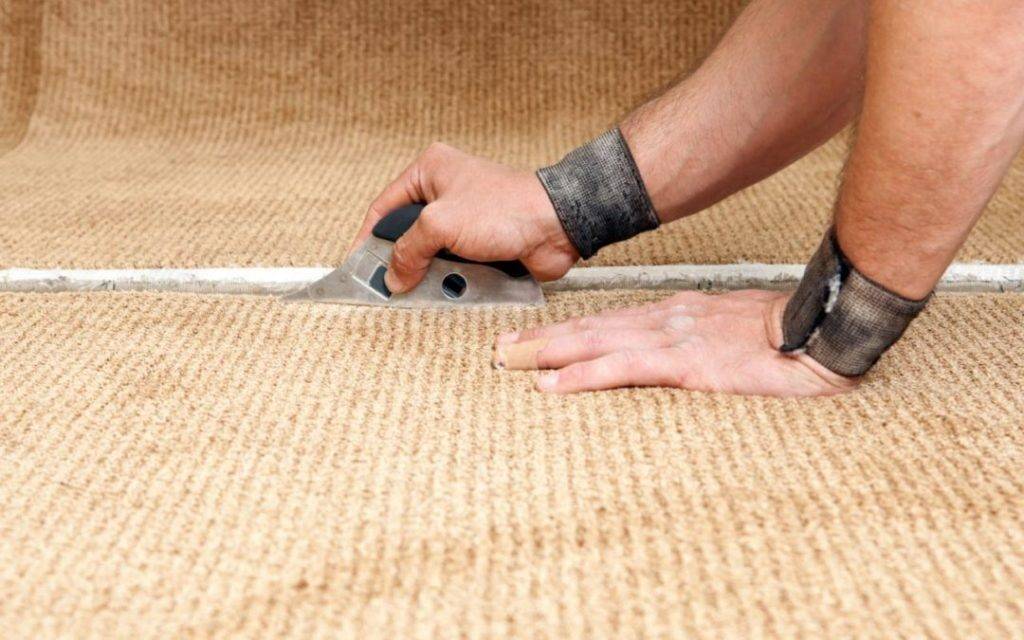 - Перед тем, как постелить элемент коврового покрытия, его необходимо раскроить до достижения интересующей формы. Для этого лучше использовать профессиональный инструмент, так как обычный строительный нож или ножницы не смогут обеспечить ровную кромку, и её придётся прятать.