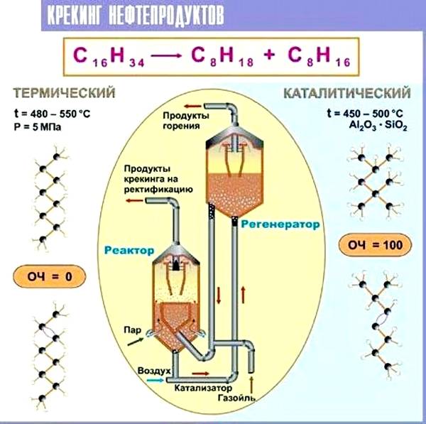 Крекинг нефти может осуществляться либо термическим, либо каталитическим способом. Термический крекинг нефти происходит под действием высоких температур. Каталитический крекинг нефти кроме высокой температуры использует катализаторы, которые значительно ускоряют процесс.