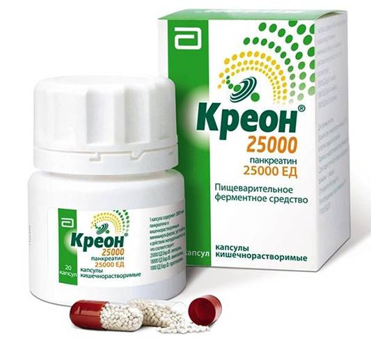 Креон еще один препарат схожий по действию с Панкреатином. Он выпускается в форме капсул, в каждой капсуле имеется строгая доза стеапсина, крахмала и протеолитических ферментов, например в Креон 100 содержится 1000 ЕД липазы, 800 ЕД амилазы, 680 протеазы.