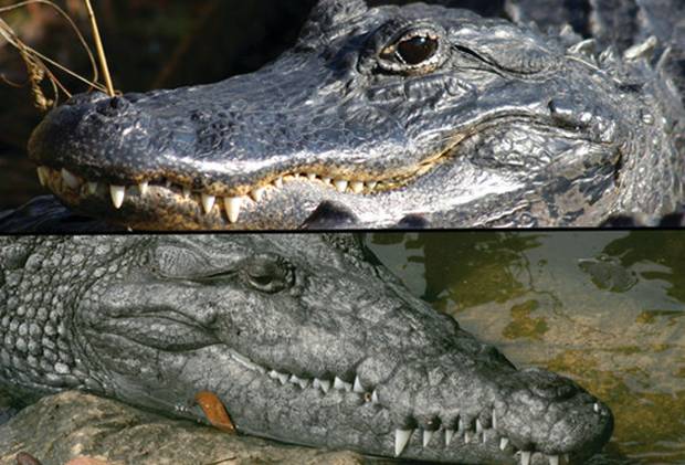 Аллигатор(сверху) и крокодил(снизу)