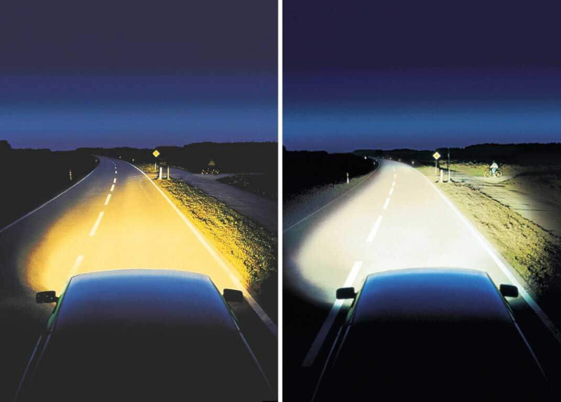 После перехода с галогенных на газоразрядные фары видимость улучшается на 20−30%.