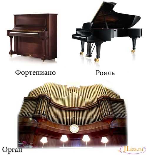 Если пальцы, ударяющие по струнам, заменить молоточками, а молоточки приводить в движение с помощью клавиш, получатся клавишные инструменты. Первые клавишные — клавикорды и клавесины — появились в средние века. Звучали они довольно тихо, но очень нежно и романтично. А в начале 18-го века изобрели фортепиано — инструмент, на котором можно было играть как громко (форте), так и тихо (пиано). Длинное имя обычно сокращают до более привычного «пианино». Старший брат пианино — да что там брат — король! — так и называется: рояль. Это уже инструмент не для маленьких квартир, а для концертных залов.
