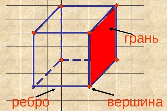 Куб — это объёмное тело (имеет грани).
