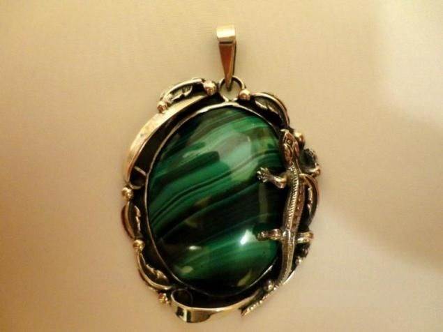 Пятое место досталось подвеске из жёлтого золота с малахитом: