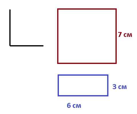 Задание: построить на бумаге в клеточку прямой угол, прямоугольник со сторонами 6 см и 3 см, квадрат со стороной 7 см.