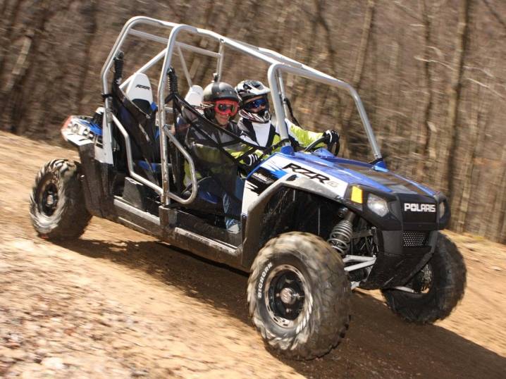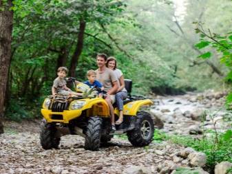 Квадрицикл – это транспортное средство для передвижения нескольких человек с меньшей скоростью, нежели у квадроциклов. Подобные устройства подойдут для перевозки грузов, преодоления труднопроходимой местности, но при этом не рассчитаны на соревнования и выполнение экстремальных трюков, что очевидно, исходя из их невысокой максимальной скорости.