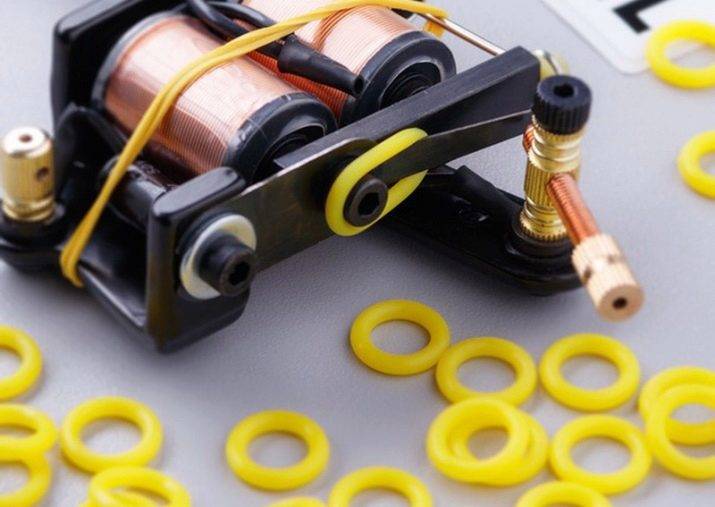 - Выбор и установка бандажной резинки. Самая большая ошибка — попытка заменить специальные изделия канцелярскими. Тогда как для татуировочной машинки нужна резинка диаметром 30 мм. Минимизируя расстояние до иглы, можно добиться повышения стабильности в работе аппарата, немного потеряв в его мощности. Это надо учесть при установке.