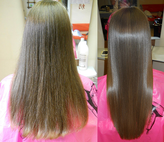 Услуга выполняет только косметические функции. Сущность данного процесса заключается в том, что пряди просто покрывают раствором силикона, а не выпрямляют их.