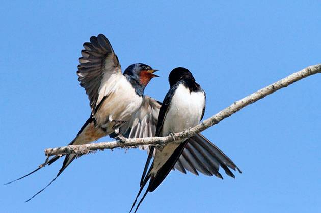 Хвосты пернатых состоят из двух половинок, но они отличаются по длине. У ласточки он значительно длиннее и сам вырез посередине гораздо глубже. У ее соперника он лишь слегка раздвоен.