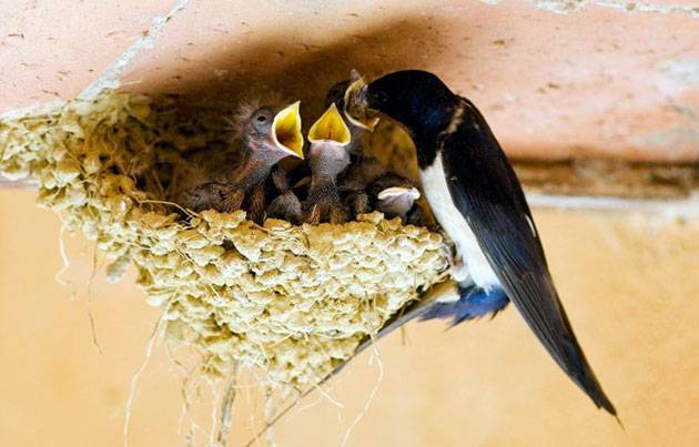 Размножение: Одним из характерных особенностей ласточек является их поведение во время размножения. Ласточки часто возвращаются на прежние гнезда, созданные в прошлом году, и активно их обновляют. Они самостоятельно строят гнезда, используя для этого сухие травы и глину, и размещают их на высоких местах, например, под крышей здания или на ветке дерева.