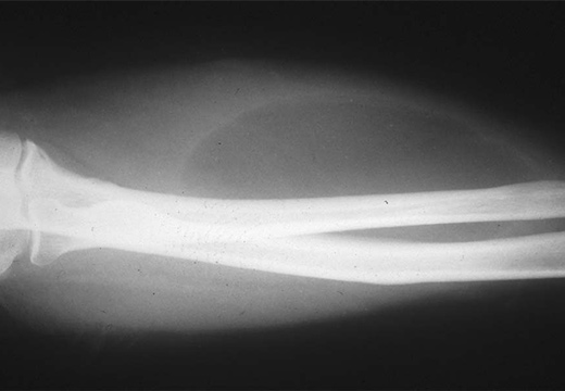 Сканирование КТ превосходит МРТ в детализации обследования поражений кортикальной кости и минерализации опухоли, в то время как МРТ является полезным источником информации для установления точной локализации опухоли на длинной оси конечности.