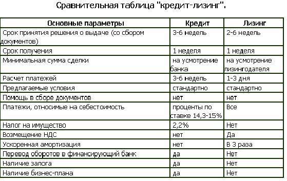 Сравнение лизинга и кредита
