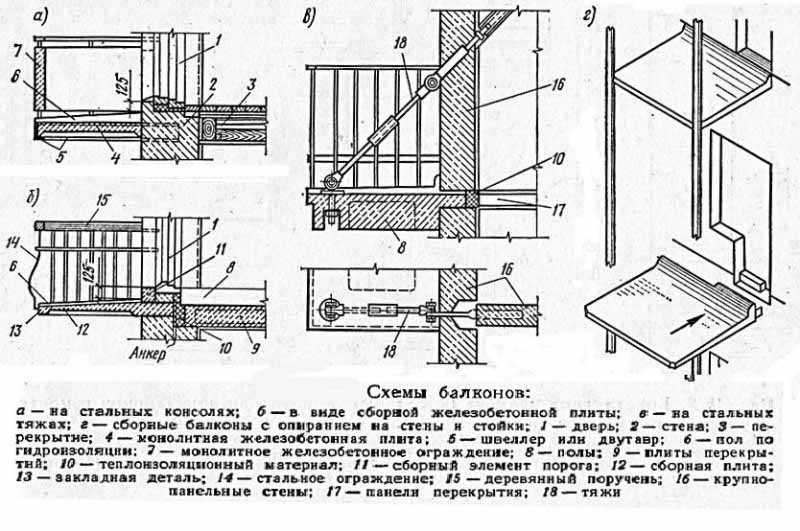 Конструкции балконов могут существенно различаться в зависимости от проекта здания. При расположении в шахматном порядке или их наличия лишь у отдельных квартир многоквартирного дома, балкон – это выступающая за наружные стены огороженная часть плиты межэтажного перекрытия. Если балконы опоясывают здание на всех этажах, у них автоматически появляются крыши, часто – стены, отделяющие владения соседей по этажу друг от друга.