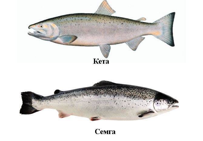 Они отличаются между собой тем, что лосось объединяет в себе целое семейство и несколько родов рыб, а семга – это конкретный вид. Часто сёмгу называют лососем, что не противоречит установленной биологами классификации рыб. Но неправильно любого представителя лососевых именовать сёмгой, поскольку это лишь отдельная разновидность.