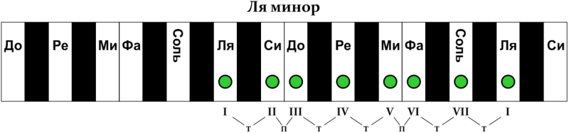 Поясню на примере. Давайте построим тональность Ля-минор. Если мы помним структуру минорного лада (Т,П,Т,Т,П,Т,Т), то это будет легко: