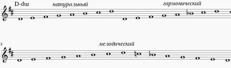 Приведем мажорные гаммы в других тональностях. Мажорная гамма в тональности «Ре»: