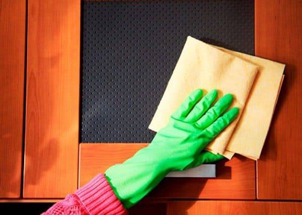 - своевременно убирать с поверхности влагу впитывающей губкой;