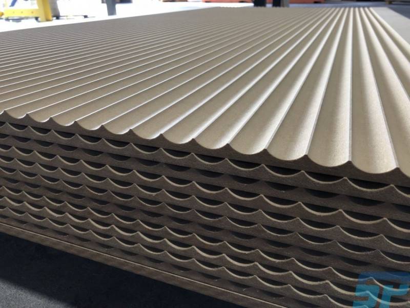 На завершающем этапе МДФ охлаждают и шлифуют под пленку ПВХ, шпон или натуральное дерево, полируют под покраску эмалью. На выходе получается материал, не уступающий по большинству параметров натуральной древесине, а в некоторых случаях и превосходящий ее.