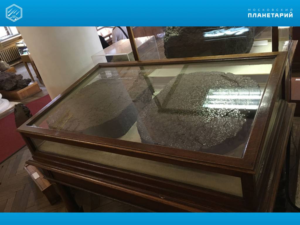 Фрагменты метеорита «Палласово железо». Минералогический музей им. А.Е. Ферсмана, Москва.
