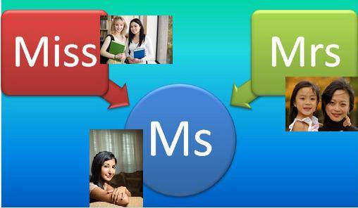 Нормы этикета, прижившиеся в англоязычных странах, предписывают различать в речи и на письме обращения к женщинам, имеющим разный социальный статус. Когда женщина представляется в обществе, она называет не только свое имя и фамилию. Правила хорошего тона обязывают ее или того человека, который ее представляет, ставить перед именем обращение, характеризующее семейное положение.