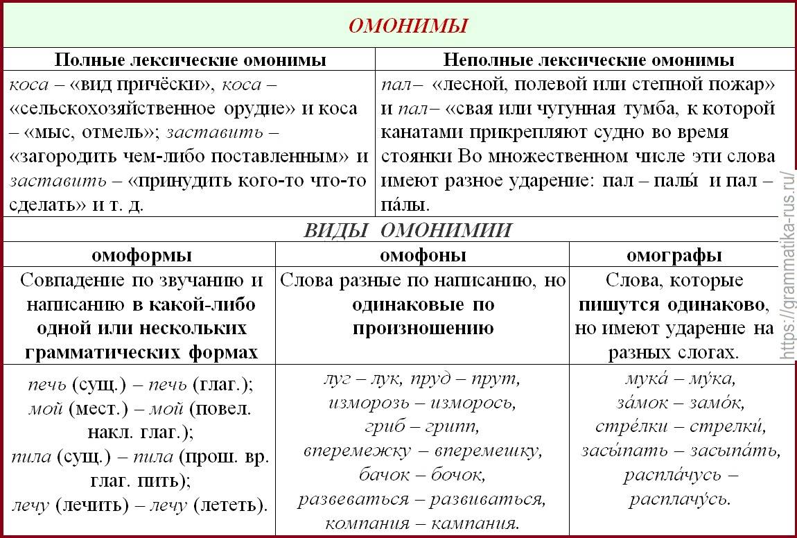 Существуют такие виды омонимов, как омофоны, омографы, омоформы.Омофоны — слова, похожие по звучанию в произношении: кот и код, гриб и грипп.
