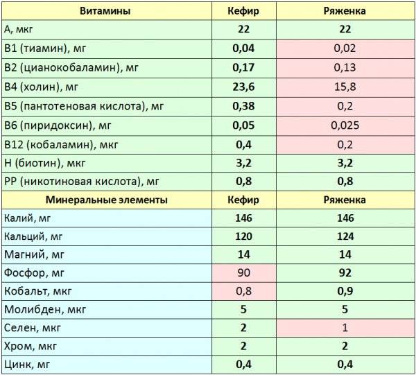 Отличие ряженки от кефира по минералам – минимальное. А вот по витаминам группы B кефир значимо превосходит ряженку. Наверное, дополнительно объяснять, что лучше для здоровья, тут не надо.