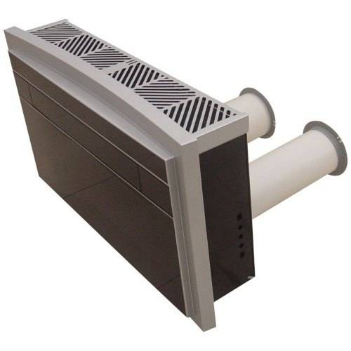 - Просунуть складные решетки сквозь воздуховоды (при необходимости, их можно предварительно окрасить в цвет фасада) так, чтобы линии решеток расположились горизонтально.