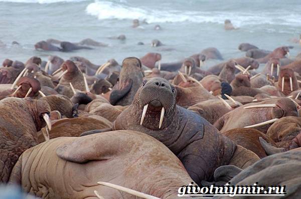Животные предпочитают жить стадом. Они образуют большие группы по несколько десятков особей. Держатся они очень дружно. Даже при наличии большого пространства, моржи