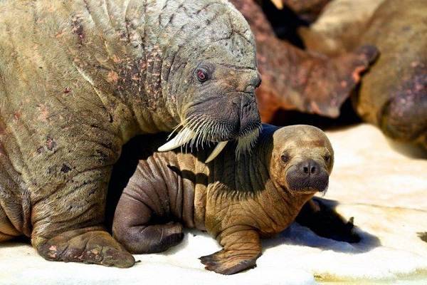 О молодых моржах заботится все стадо. Самки самоотверженно закрывают потомство своими телами, если грозит опасность, готовы погибнуть, защищая малышей. Детеныш моржа для защиты и отдыха может забраться на спину к любой взрослой особи, чувствовать себя в безопасности.