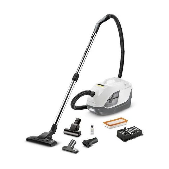 | 2 | ![]() | Karcher-DS-6/Mediclean. У этого немецкого агрегата кальянного типа привлекательный дизайн. Ds 6 полностью очищает проходящий через него воздух. У него не очень высокая мощность всасывания (250 Вт). Ее хватает для уборки помещений без ворсистых ковров. Весит Karcher ds всего 7,5 кг, емкость его колбы 1,7 л. Среди его достоинств телескопическая трубка из металла и возможность хранить аппарат вертикально. Цена агрегата – 18–25 тысяч рублей. |