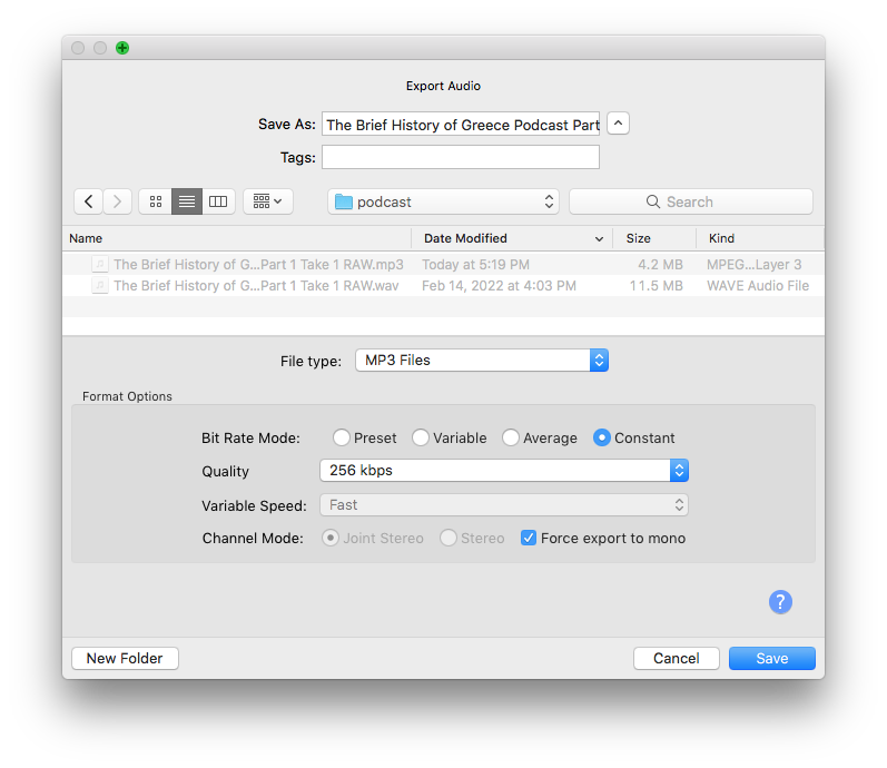 Существует несколько параметров сжатия, которые вы можете выбрать при экспорте или сохранении файлов MP3. Самое главное — битрейт