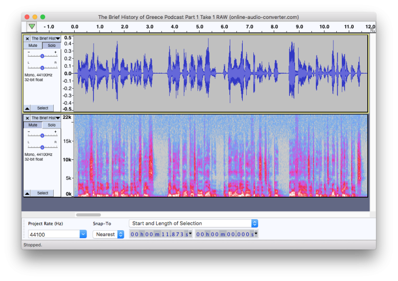 Для визуального сравнения двух форматов и их характеристик воспользуемся бесплатным инструментом Audacity с установленным кодеком LAME MP3 (версия 3.1). Мы запишем закадровый голос и сохраним файл как в формате MP3, так и в формате MP4/AAC.