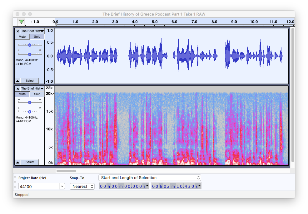 Для визуального сравнения двух форматов и их характеристик воспользуемся бесплатным инструментом Audacity с установленным кодеком LAME MP3 (версия 3.1). Мы запишем закадровый голос и сохраним файл как в формате MP3, так и в формате MP4/AAC.