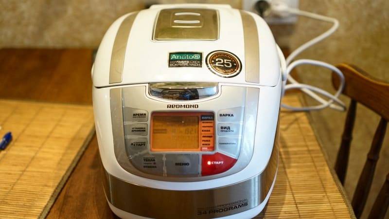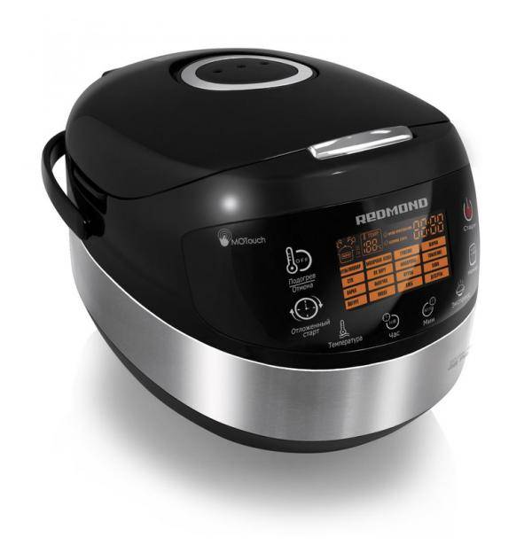 Все мультиварки, и в особенности REDMOND RMC-M90, оборудованы герметично закрывающимся крышкой, что выполняет приготовление пищи в приборе быстрее, чем на плите, но дольше, чем в скороварке.
