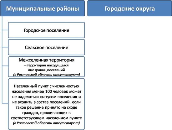 Рассмотрим виды муниципальных образований на примере Ростовской области. В составе области находятся 463 муниципалитета, из них: