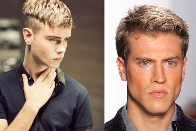 Довольно элегантно смотрится тандем классического бокса и челки, особенно если аккуратно уложить перьями или зачесать назад. Единственное условие — челка должна быть короткой. Однако при желании можно оставить длинный хохолок почти до бровей, но этот вариант уже более креативный и не пользуется большой популярностью ни у молодых, ни у мужчин постарше.
