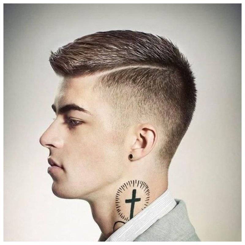 С таким же успехом это может быть простая прямая линия, но она уже выделит вас среди других парней. Как правило, такие узоры наносят на виски или прилегающие участки, реже на затылок. Вы можете сбрить дугу, параллельные полосы, звездочки и т.д. Профессиональные парикмахеры могут оформить даже небольшую надпись, если позволяет длина и густота ваших волос.