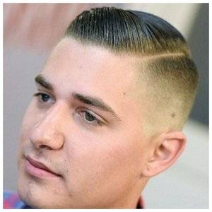 Модная стрижка предполагает создание удлиненной зоны макушки (до 3 см) и очень короткого затылка, виски (до 3 мм). Пограничная линия (переход между разной длиной волос) достаточно выражена, располагается над линией затылка, максимально открывая затылочную область и виски.