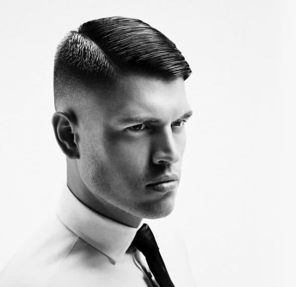 Короткая гладкая прическа — отличный способ сохранить волосы чистыми и гладкими. В сочетании с лысым бритьем эта стрижка идеально подходит для мужчин, которые много работают, поскольку не требуют ухода. Эта стрижка оказалась настолько популярной из-за ее гладкого вида, не требующего особого ухода. Расчешите волосы набок и нанесите гель, чтобы создать более привлекательный вид.