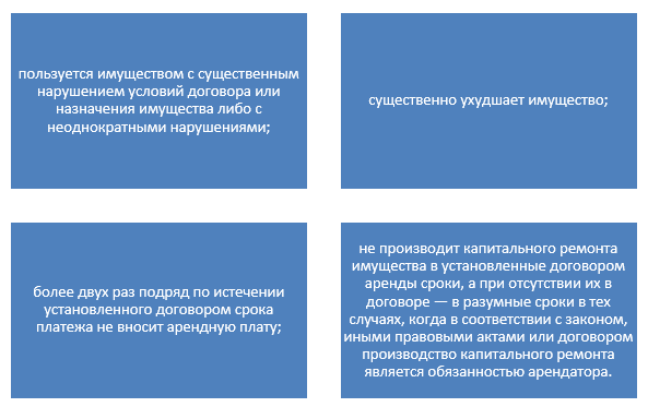 Арендатору разрешается в судебном порядке расторгать соглашение в таких ситуациях: