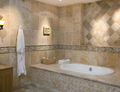 Облицовка стен иногда помогает скорректировать пропорции комнаты. Прямоугольная плитка, уложенная горизонтально, сделает комнату длиннее, но одновременно визуально «опустит» потолок. Кафель, уложенный вертикально сделает потолок выше, но может визуально уменьшить комнату, и такой прием лучше использовать не на всех стенах, а на одной-двух.