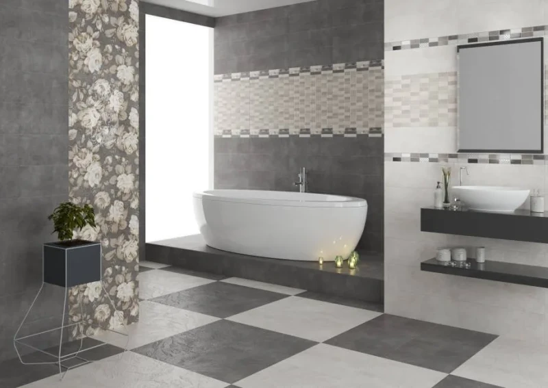Напольная плитка может быть гладкой или иметь рельефную поверхность для предотвращения скольжения. Она часто имеет больший размер, что позволяет создавать более спокойное визуальное восприятие на полу.