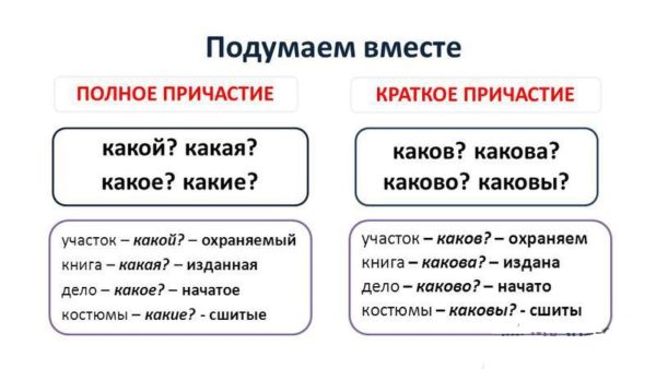 Чтобы быстро найти причастное слово среди других частей речи, следует чётко запомнить его отличительные черты. Во-первых, это наличие особой глагольной формы