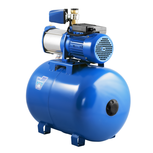 Насосная станция состоит из самого насоса, обратного клапана, системы управления и аккумулятора. Подобное устройство имеет резиновую грушу, установленную внутри металлического корпуса. В грушу закачивается вода, а вокруг нее воздух. Специальный датчик реагирует на изменения в давлении окружающей среды, которые происходят по мере наполнения груши водой. Когда давление достигает максимума, датчик останавливает подачу воды.